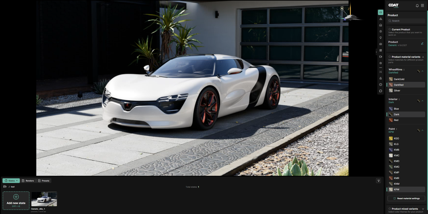 • The Lower area to display States, Renders and Presets.