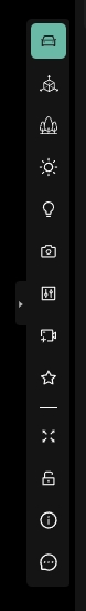 • Reveals 2 icons to the right: one for Exterior camera presets and another for Interior camera presets.