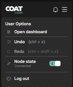 • Logout - opens the menu to logout and release your COATcreate license.