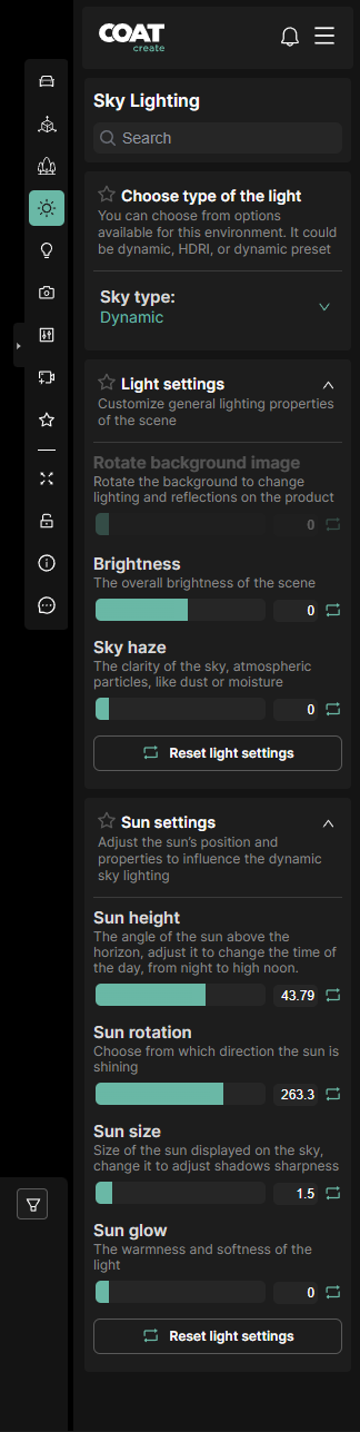 Sun Settings - Adjust the sun’s position, rotations size and glow for dynamic skies.
