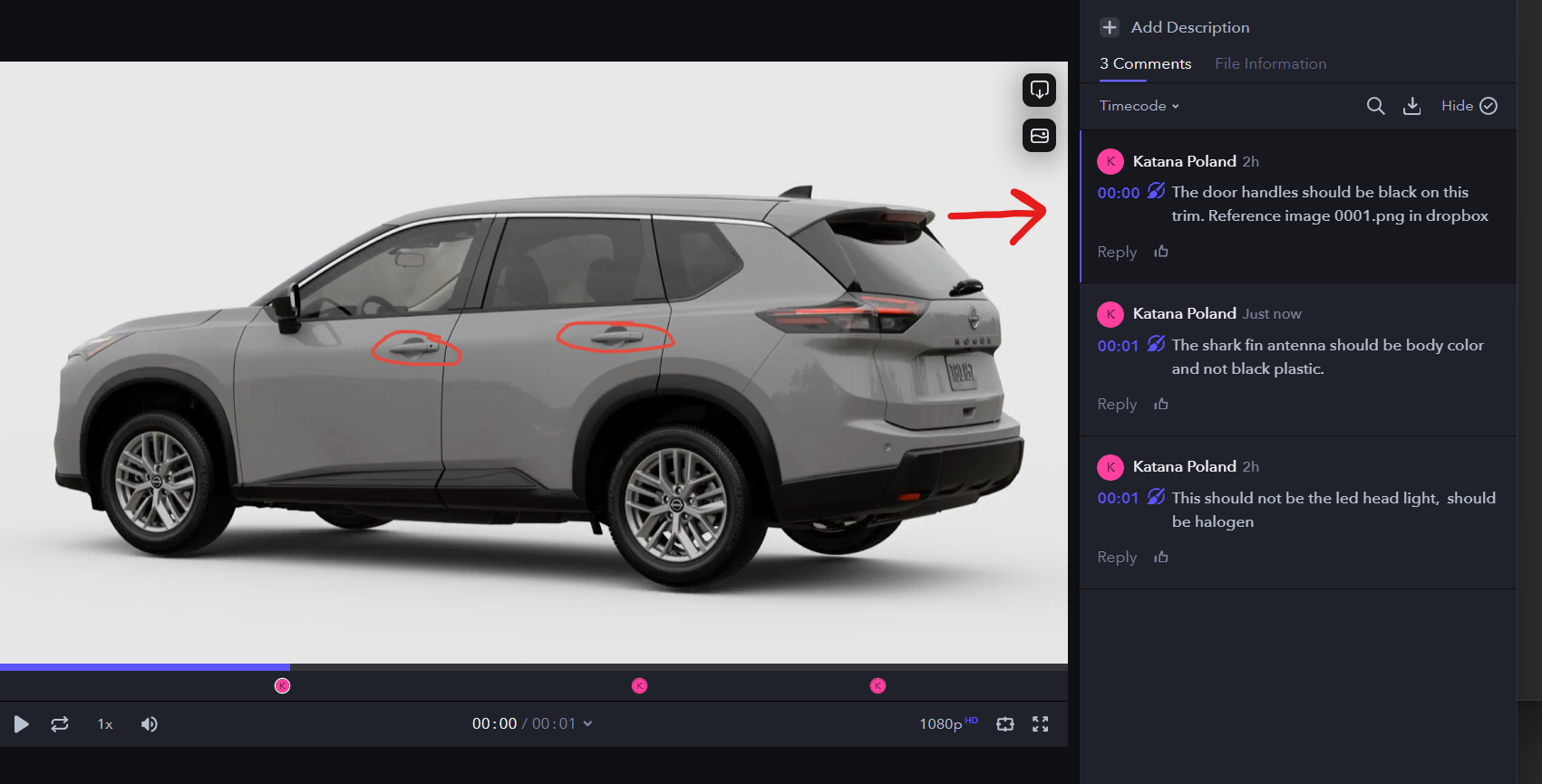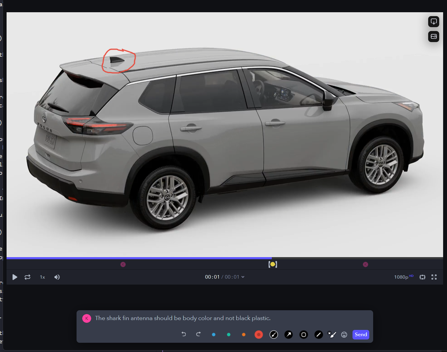 Frame.io will be used comment on the vehicle. There will be pre-rendered images from Omniverse that will be available for the user to markup directly.